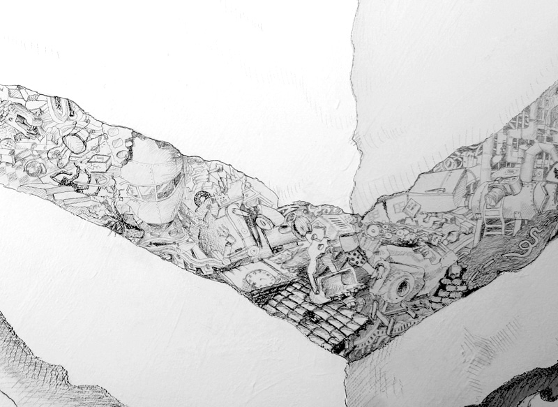 En Posmoderno Superior, se ficciona sobre un posible panorama futuro. Alrededor de la idea de la desaparición de la especie y la cultura que somos ahora, y el rastro que dejaría con toda certeza sus ruinas sedimentadas en alguna capa de la tierra, restos de una civilización que el tiempo transformaría en fósiles de objetos comunes, tales como elementos industriales y fragmentos de automóviles, provenientes de un periodo a miles de años de distancia, hipotéticamente llamado Posmoderno Superior. La obra se compone de un mural con un gráfico de un corte terrestre que muestra las capas geológicas, en particular la que corresponde a la civilización de nuestros días, a cientos de metros bajo la superficie, conformada por un sin fin de dibujos de las invenciones humanas. Y se complementa por un conjunto de fósiles de concreto, una puerta de automóvil, otro de un fragmento de un poste de la luz con un trozo de banqueta, y otro más de algún mosaico proveniente de una vía peatonal. Esta especializada ciencia ficción bien podría llamarse Geología Urbana.